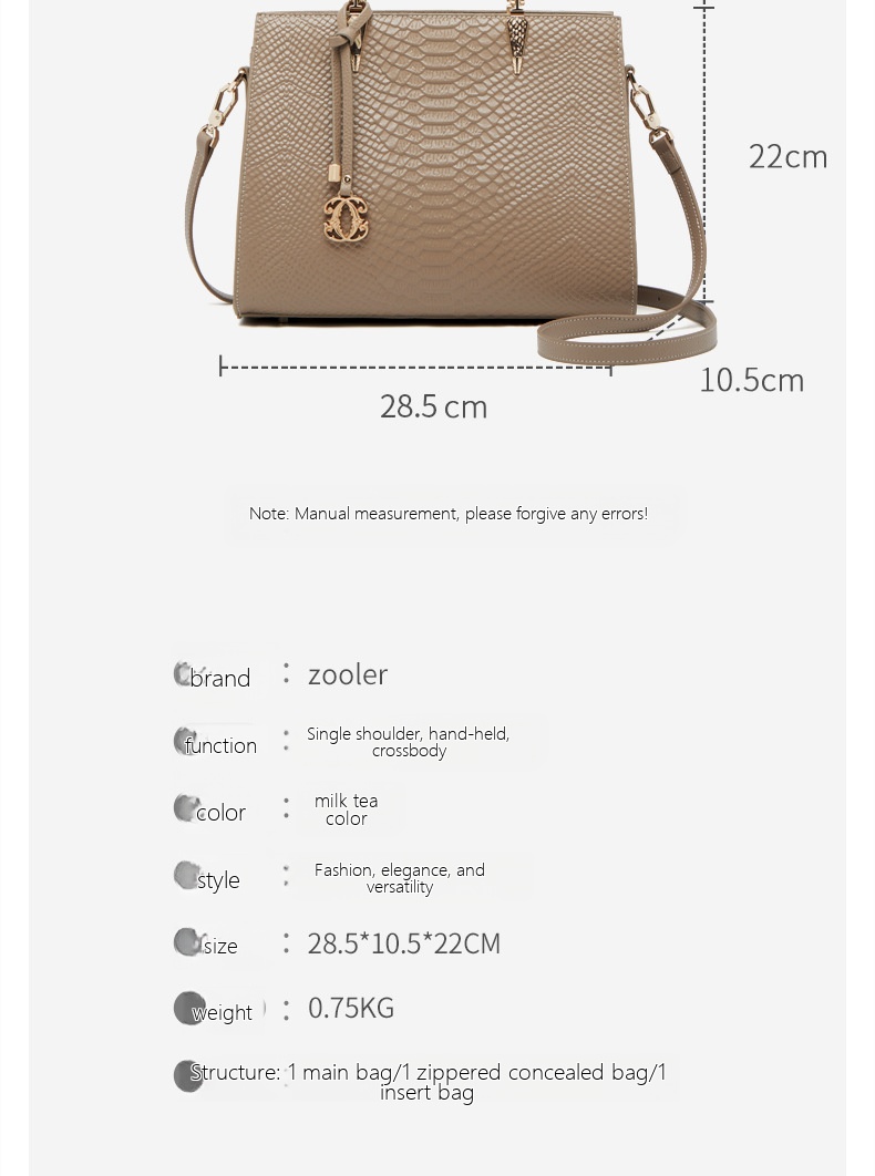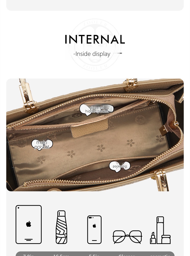 | Internal Structure | Zipper Concealed Bag, Phone Bag, ID Bag, Layered Zipper Bag |