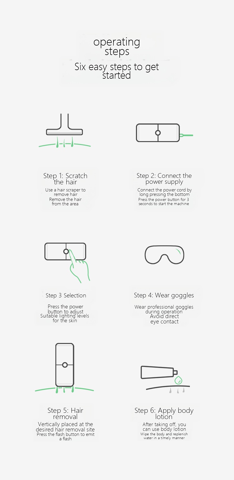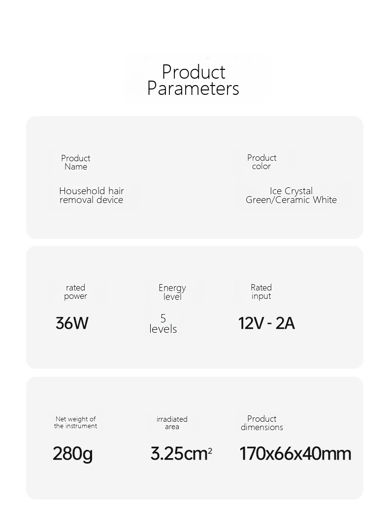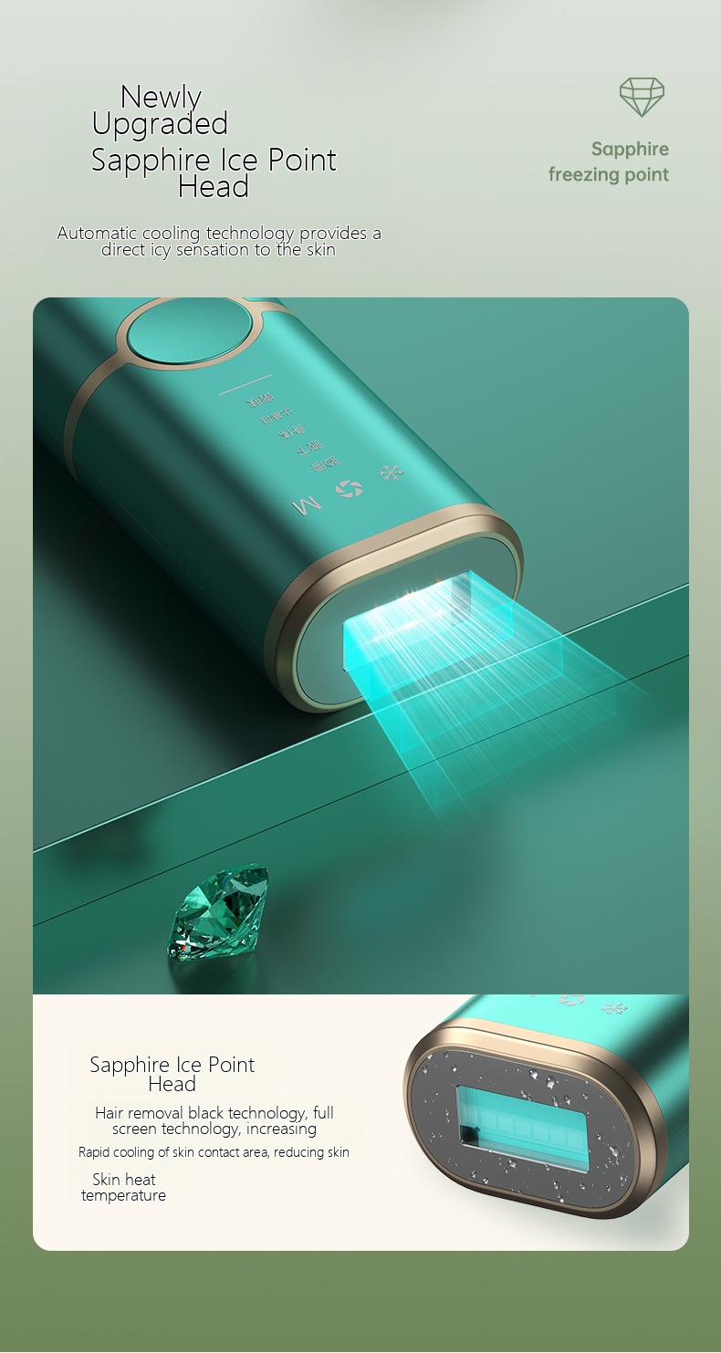 | Color | A upgraded version - freezing point photon -5th level strength - green, A upgraded version - freezing point photon -5th level strength - white, A upgraded version - purple red light - hair removal device, A upgraded version - freezing point photon -5th level strength - black, C upgraded version - freezing point photon hair removal - deep purple, C upgraded version - freezing point photon hair removal - white, C upgraded version - freezing point photon hair removal, C upgraded version - freezing point photon hair removal - black |