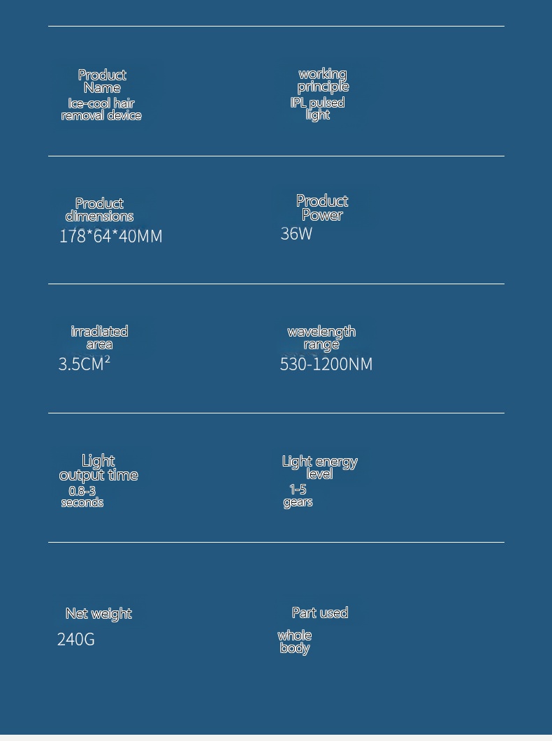 | Hair removal device wavelength | 530-1200nm |