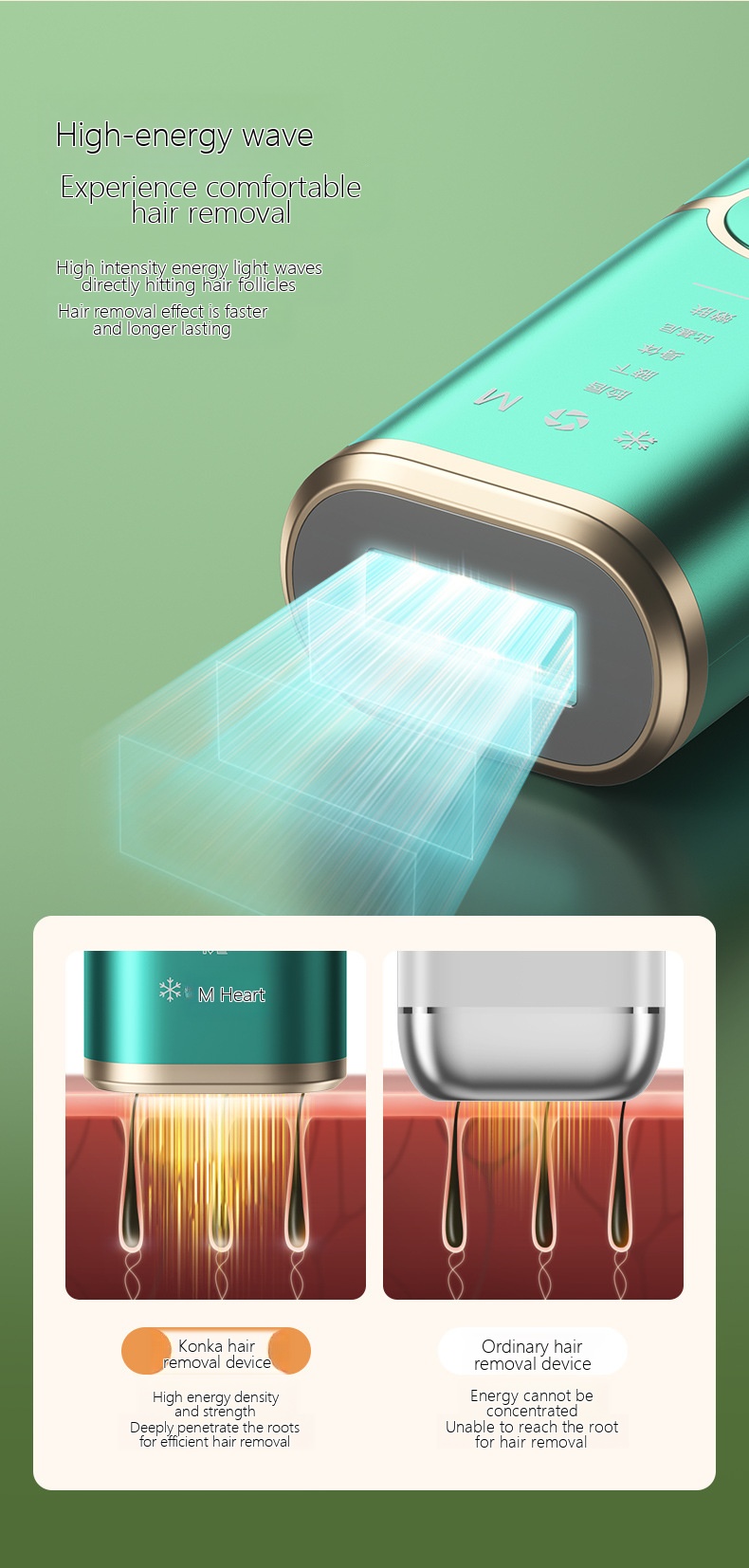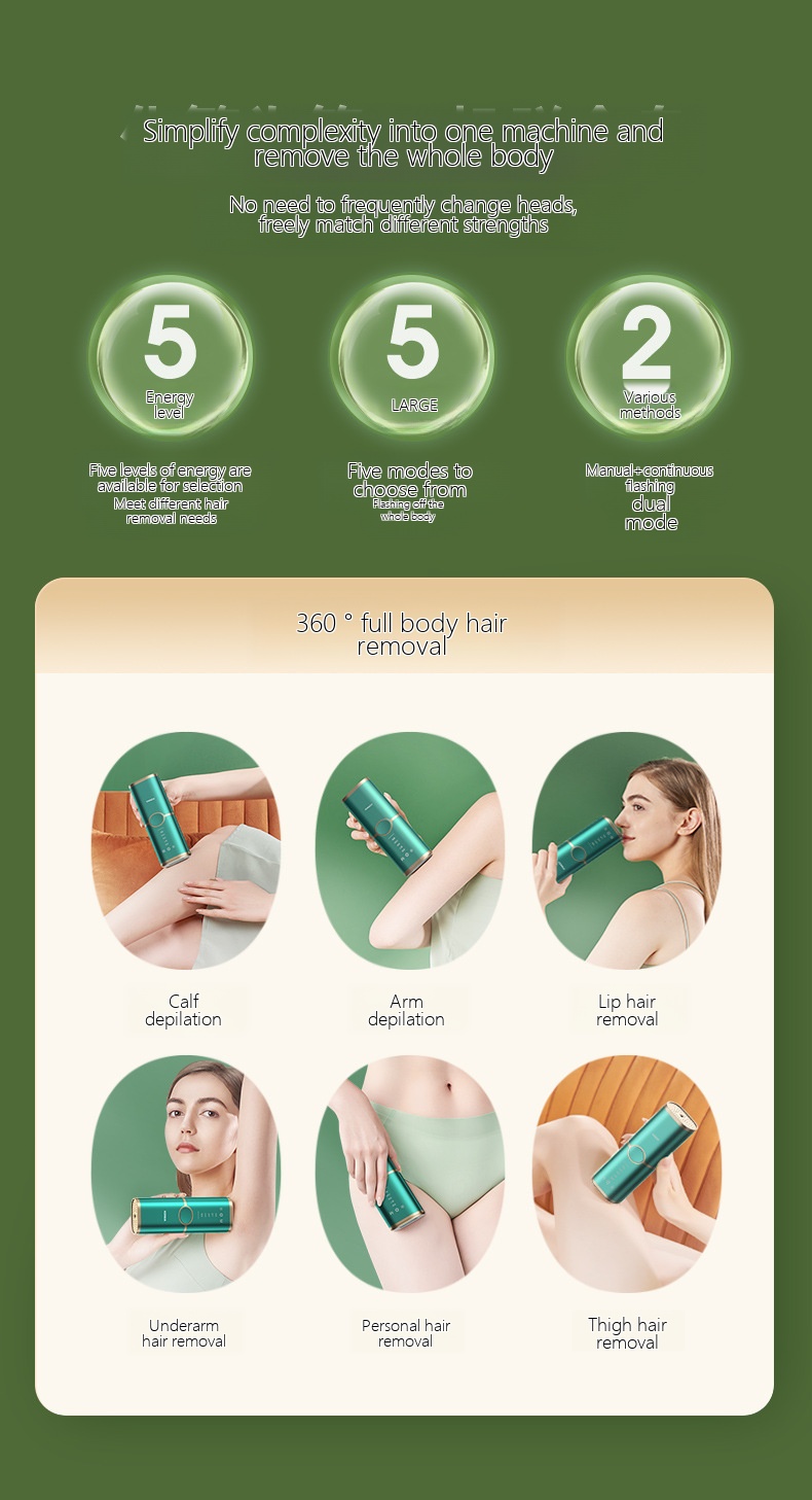 | Color | [Quality upgrade] Type A - Freezing point painless skin protection -5 modes - Green, [Quality upgrade] Type A - Freezing point painless skin protection -5 modes - White, [Quality upgrade] Type A - Freezing point painless skin protection -5 modes - Purple, [Quality Upgrade] Type A - Ice Point Pain free Non damaging Skin -5 Modes - Black, [Quality Upgrade] Type C - Ice Point Pain free Non damaging Skin - Deep Purple, [Quality Upgrade] Type C - Ice Point Pain free Non damaging Skin - White, [Quality Upgrade] Type C - Ice Point Pain free Non damaging Skin - Light Blue, [Quality Upgrade] Product - Ice Point Pain Free and Skin friendly - Black, [New] H8- Yellow -7 Modes - Sapphire Ice Point - Hair Removal Gift Pack, [New] H8- Black -7 Modes - Sapphire Ice Point - Hair Removal Gift Pack, [High end 010 Purple] Hair Removal Ice Apply 2-in-1+5 Large Modes+High Energy Light Wave+Luxury Edition Hair Removal Gift Pack, [High end 010 Pink] Hair Removal Ice Apply 2-in-1+5 Large Modes+High Energy Light Wave+Luxury Edition Hair Removal Gift Pack |