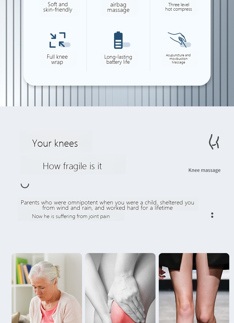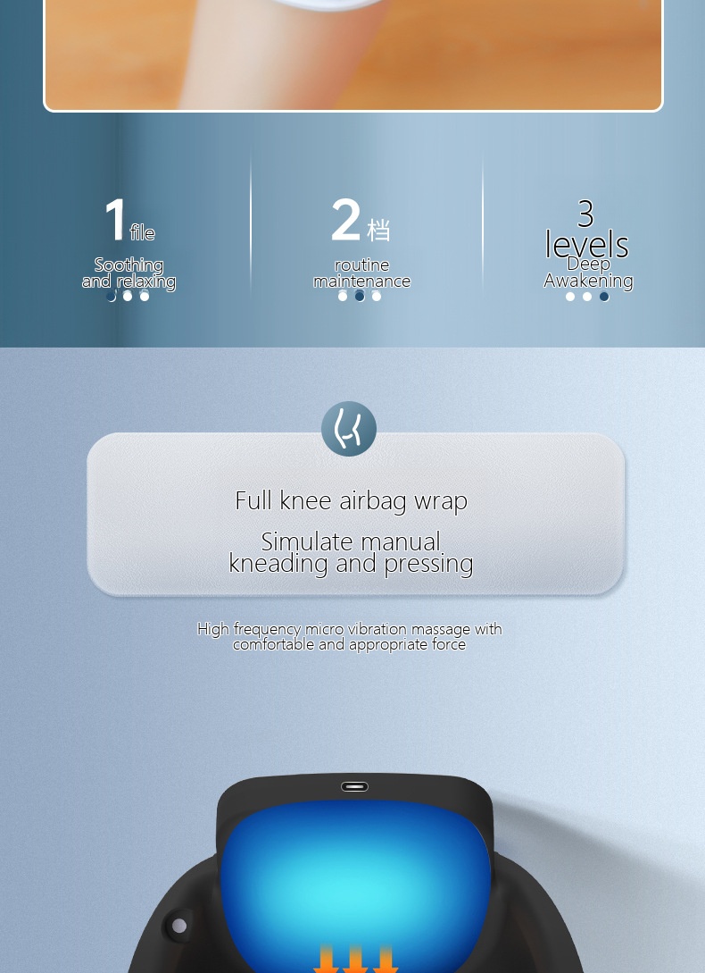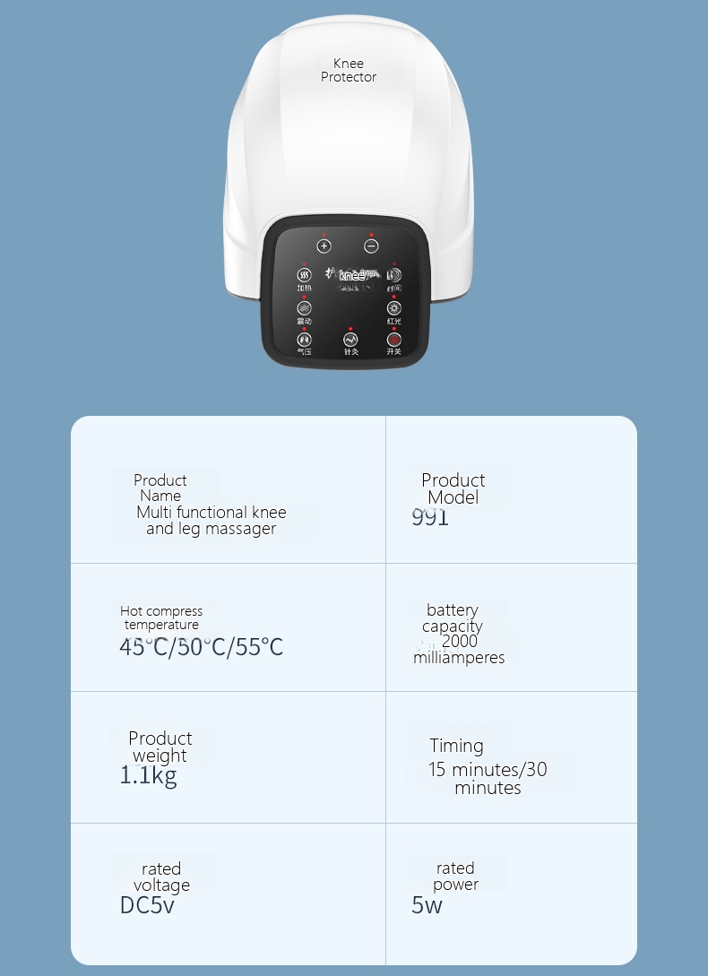 | Product selling points | computerized intelligent control/full knee wrapping, vibration, hot compress, |